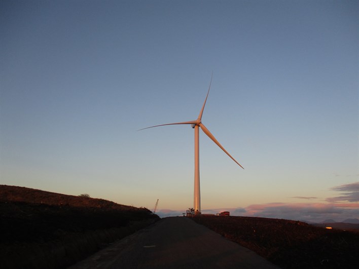 This week at Freasdail the site team reached a major milestone with the erection of the first turbine. The picture below shows turbine 7 in the evening light.